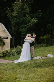 Alex + Jackie started their Cathedral Ledge adventure wedding day getting ready at The Inn at Thorn Hill in Jackson NH where Jackie did her first look with her dad in the garden.
