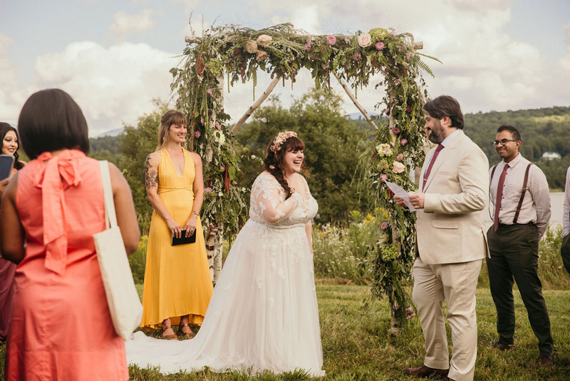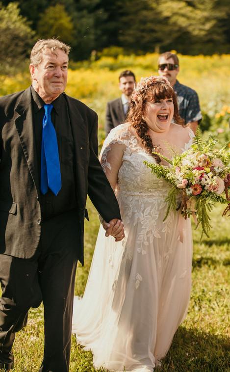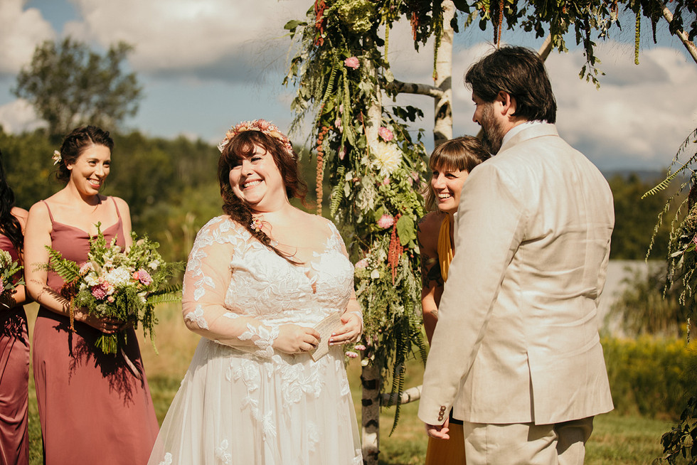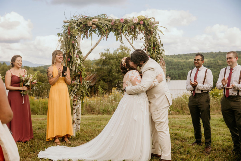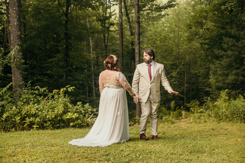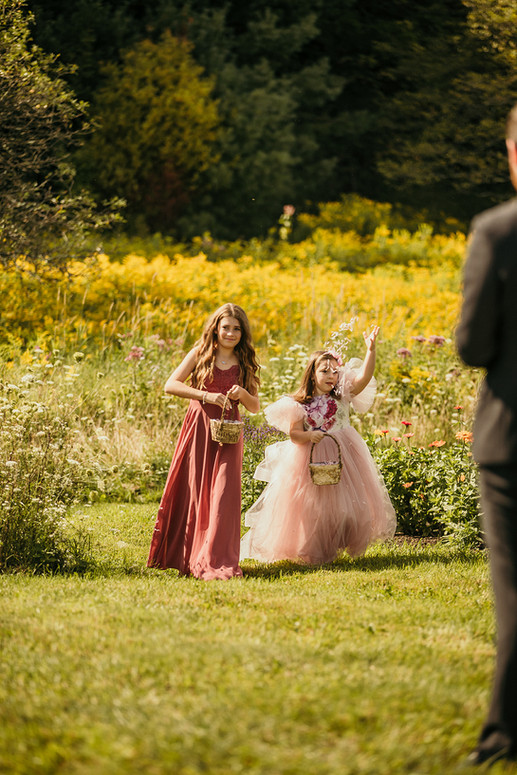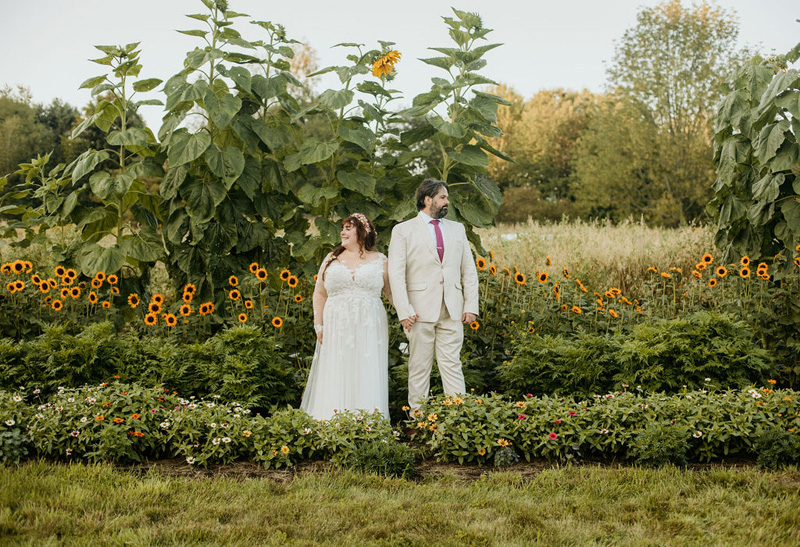 It was a beautiful day for Jamie and Nick's Vermont intimate wedding among all the beautiful sunflowers in Jericho Vermont. The day began gearing up for a first look in the couple's backyard. Then we went to the ceremony location in a carefully landscaped garden overlooking Camel's Hump State Park.
